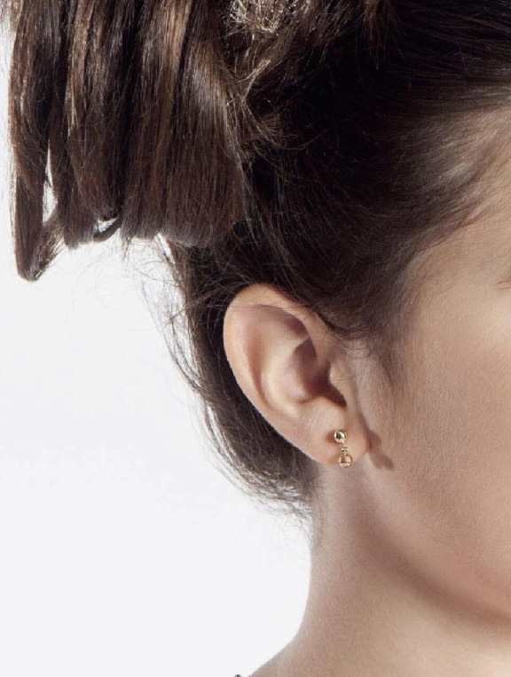 Brinco Pingente bola em Ouro Amarelo 18K com duplo acabamento, sendo bola superior polido e inferior fosca .