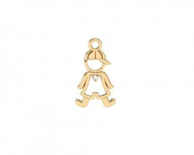Pingente Menino em Ouro Amarelo 18k vazado, com 1 pedra de topázio branco