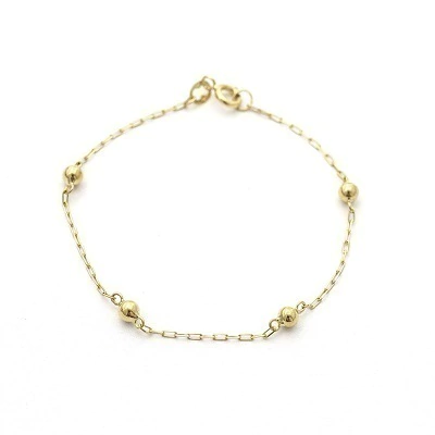 Pulseira Tradicional Bolinha em ouro amarelo 18K, medindo 13cm com redutor para 12cm, 4 bolinhas com 3mm cada